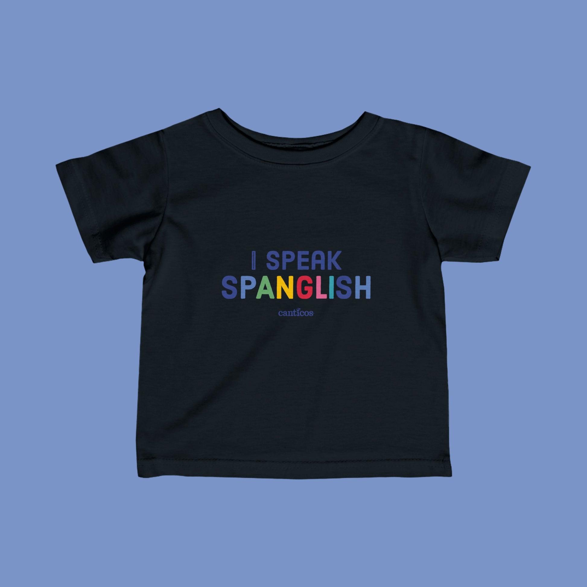 Spanglish is in vogue with our I speak Spanglish bilingual toddler t-shirt.